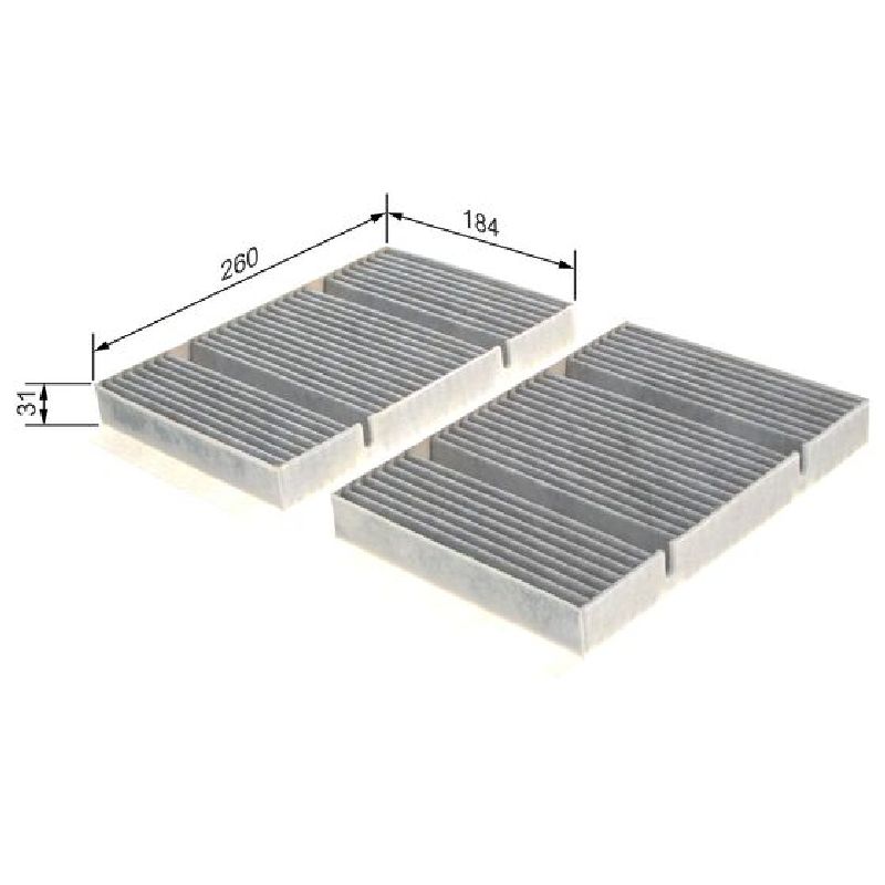 Tip filtera: sa aktivnim ugljenom | Dužina: 184.0 mm | Širina: 260.0 mm | Visina: 30.5 mm | Količina: 2.0 kom | Šifra proizvoda: IC-DD6AE7