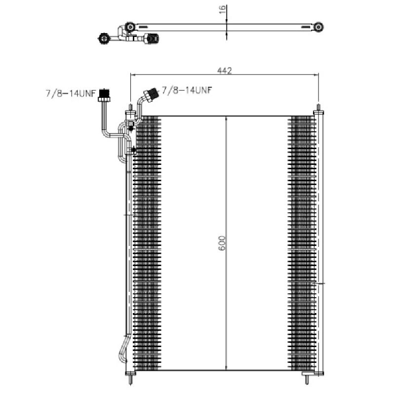 A/C condenser 442x600x16 fits: MERCEDES ATEGO, AXOR, AXOR 2 01.98-