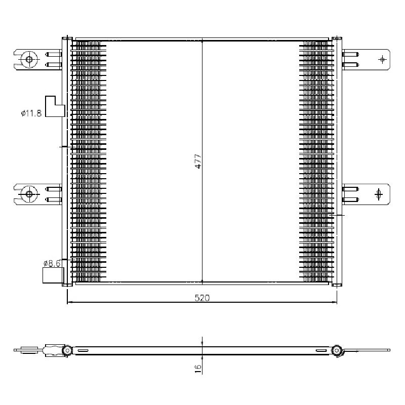 A/C condenser 540x477x16 fits: RVI C, D; VOLVO FE II 05.12-
